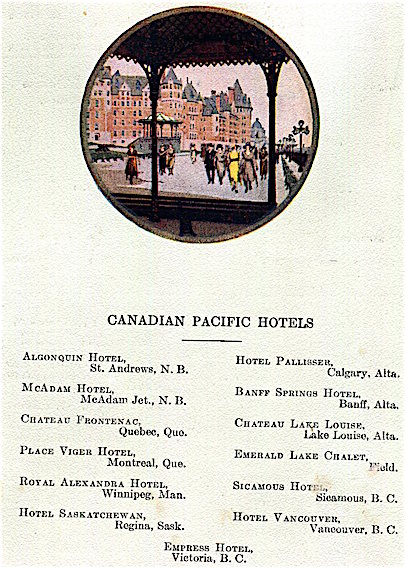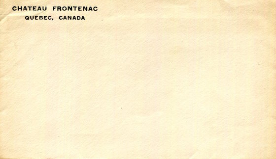 Canada Quebec Chateau Frontenac Menu 1927 Back
