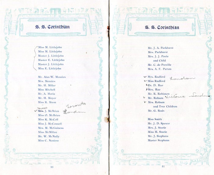 Canada Transport Steamship Allan Line Corinthian Passenger List 1913 Inside 2