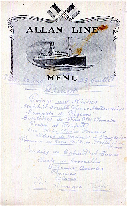 Canada Transport Steamship Allan Line Lake Erie Menu 1903