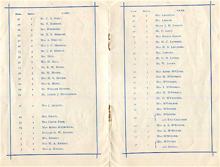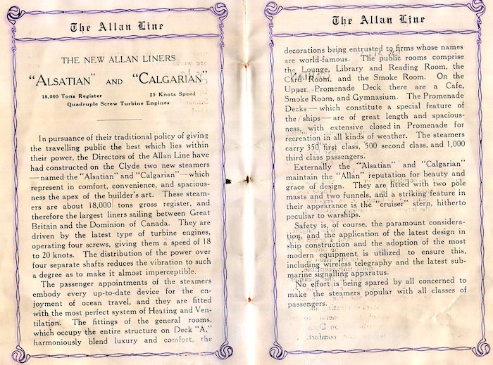 Canada Transport Steamship Allan Line Laurentian Passenger List 1909 Inside