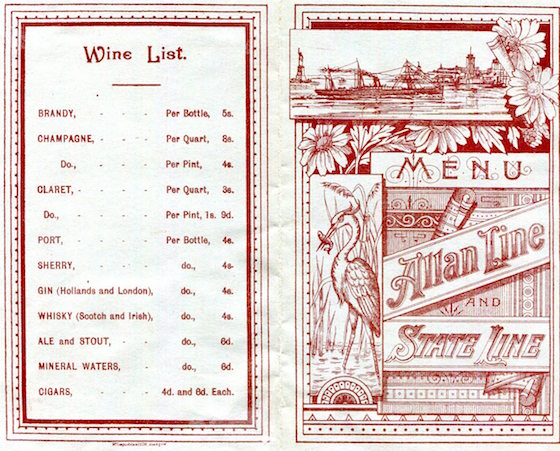 Canada Transport Steamship Allan Line Mongolian Menu 1897 Front copy