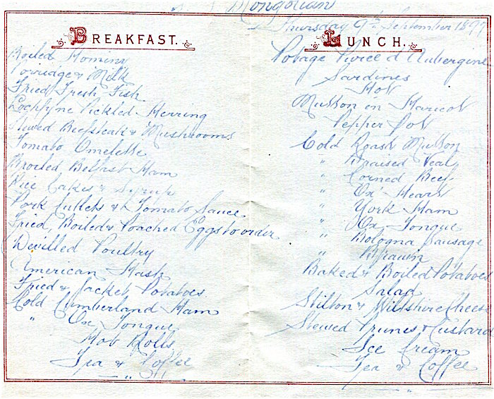 Canada Transport Steamship Allan Line Mongolian Menu 1897 Inside