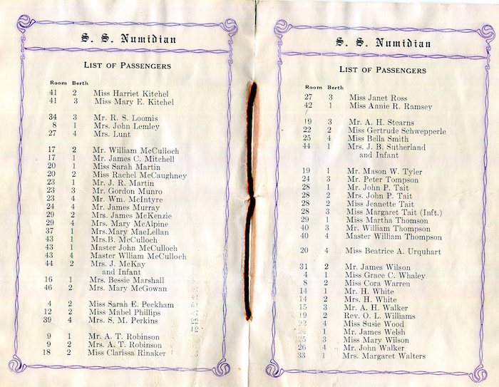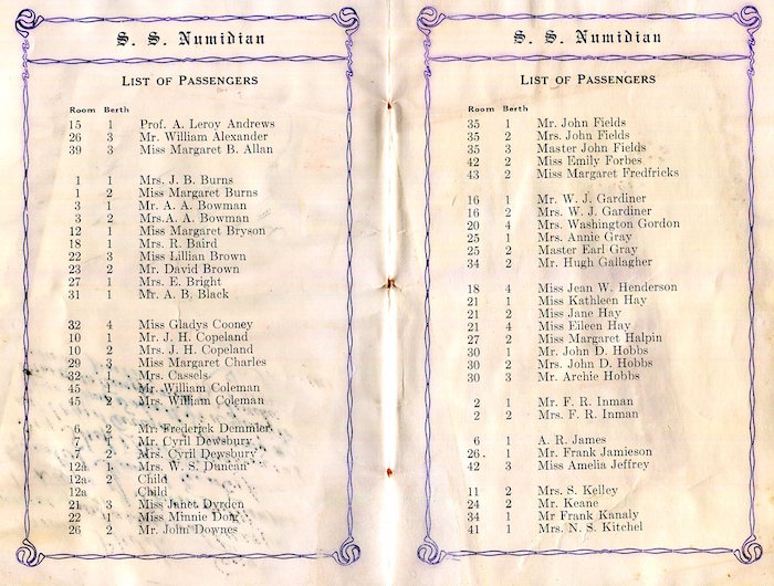 Canada Transport Steamship Allan Line Numidian Passenger List 1914 Inside 3