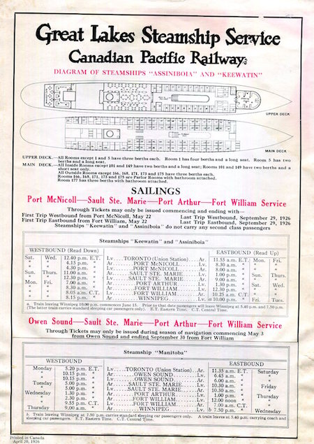 Canada Transport Steamship Canada Steamship Lines Brochure Great Lakes 1926 Inside