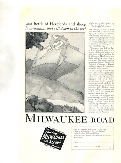 USA Ad Transport Railroads Milwaukee Road 1928