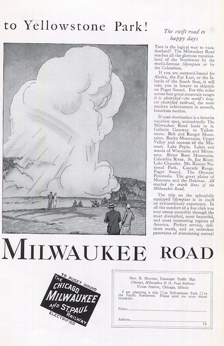 USA Ad Transport Railroads Milkwakee Road Yelowstone 1927