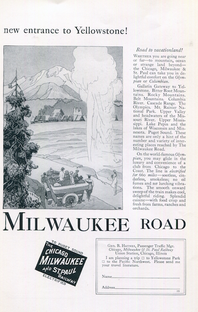 USA Ad Transport Railroads Milkawukee Road Yellowstone Park 1927