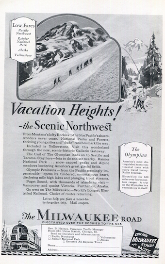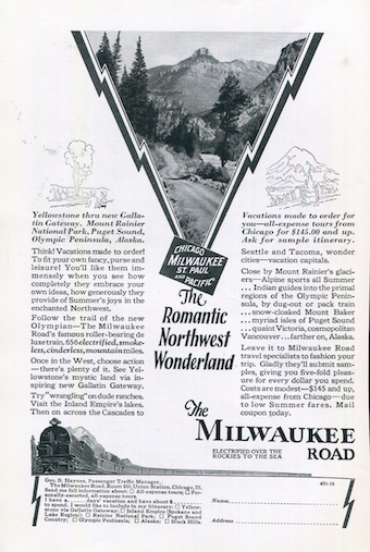 USA Ad Transport Railroads Milkwaukee Road Romantic Norhtwest 1929