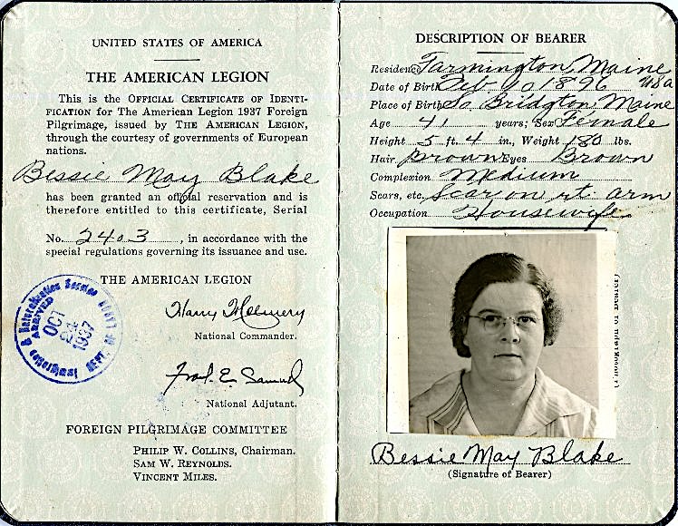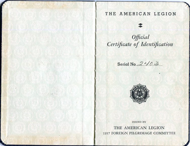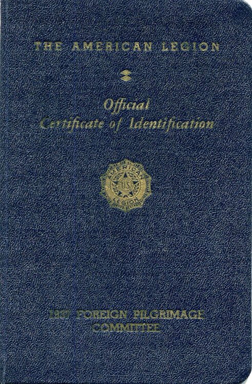 USA Passport American Legion Pilgrimage No 2403 1937 Front