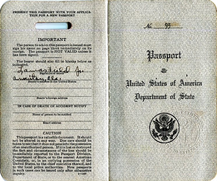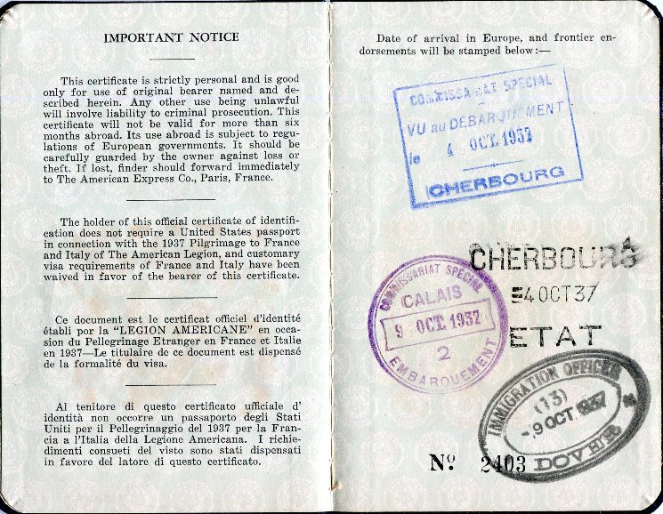 USA Passport American Legion Pilgrimage No 2403 1937 Inside 1