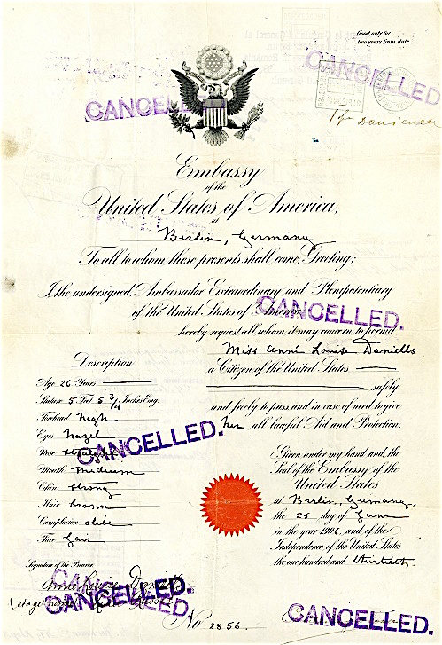 USA Passport Berlin Germany No 2856 1906 Front
