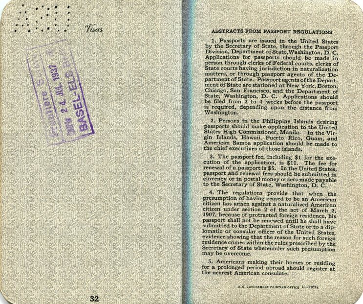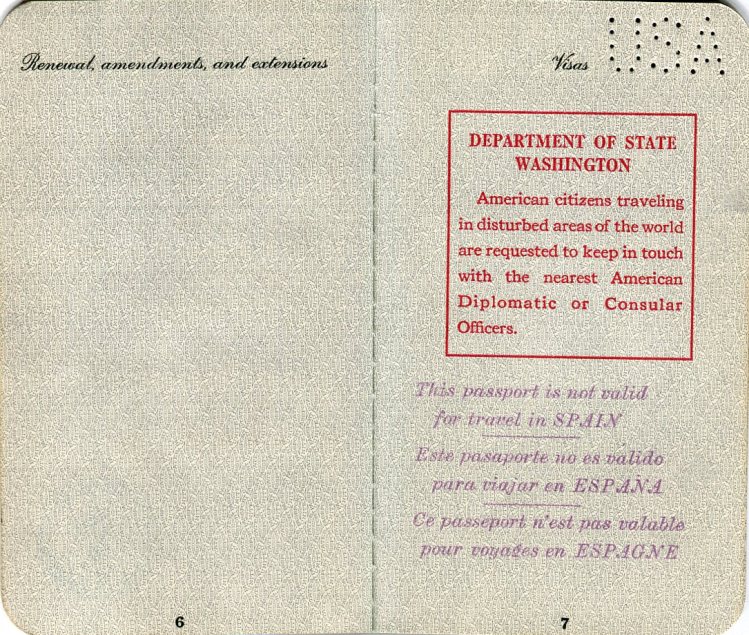 USA Passport American Legion Pilgrimage No 2403 1937 Inside 3