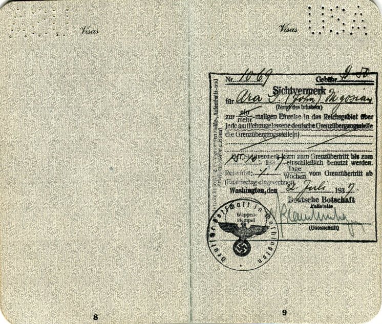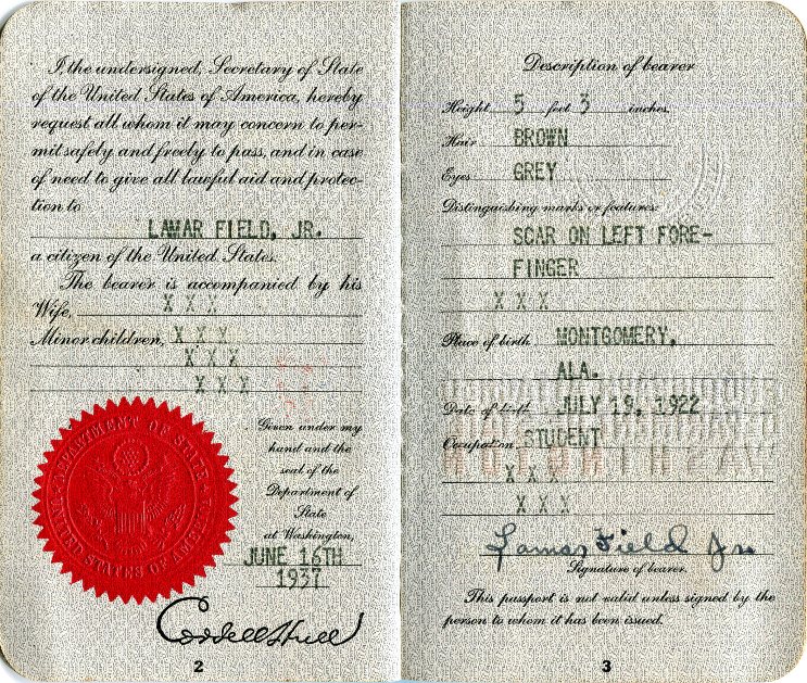 USA Passport American Legion Pilgrimage No 2403 1937 Inside 2