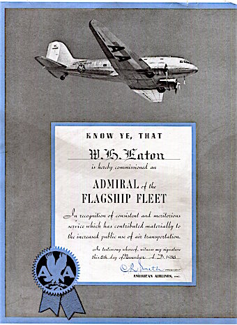 USA Admiral Of Fleet Certificate Transport Airlines American Airlines 1938