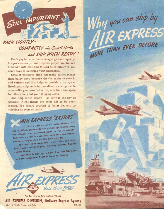 USA Brochure Transport Airlines Air Express 1945 Front