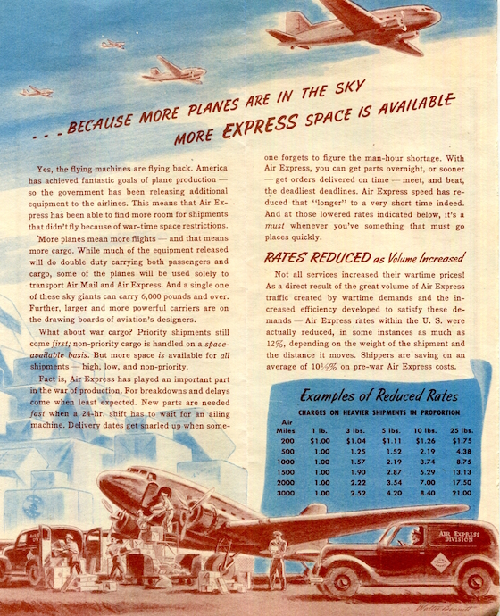 USA Brochure Transport Airlines Air Express 1945 Inside