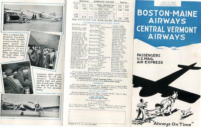 USA Brochure Transport Airlines Boston Maine Airways 1937 Front