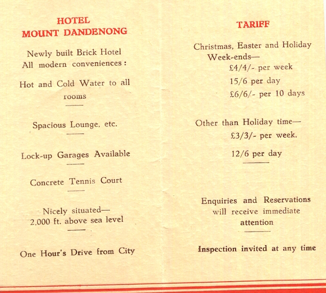 Australia Olinda Brochure Hotel Mount Dandenong 1938 Front