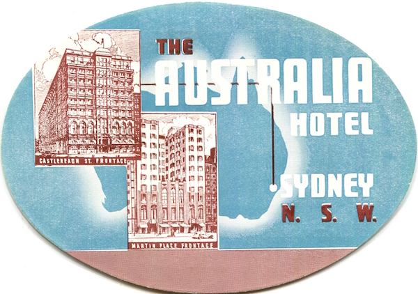 Australia Sydney Luggage Label Hotel The Australia 1938