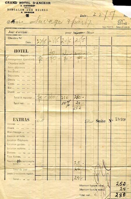 Cambodia Siem Reap Hotel Receipt Grand Hotel Dangkor 1938