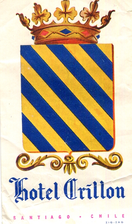 Chile Satiago Luggage Label Hotel Crillon 1938