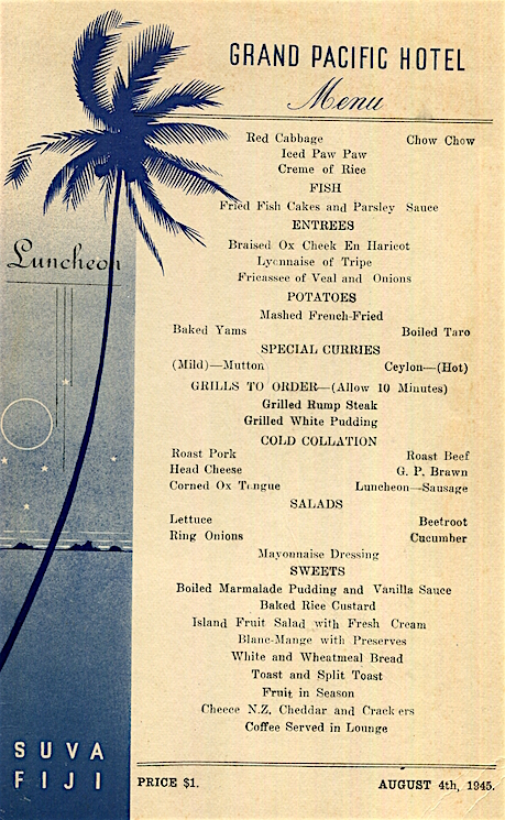 Fiji Suva Grand Pacific Hotel Menu 1945 1