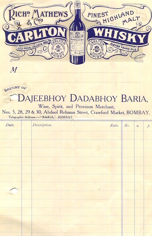India Bombay Commerce Carlton Whisky Stationery 1924