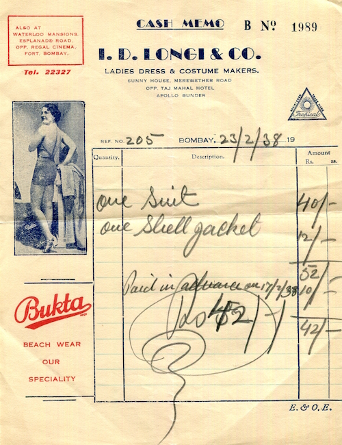 India Bombay Commerce ID Longi Co Tailors Stationery 1938