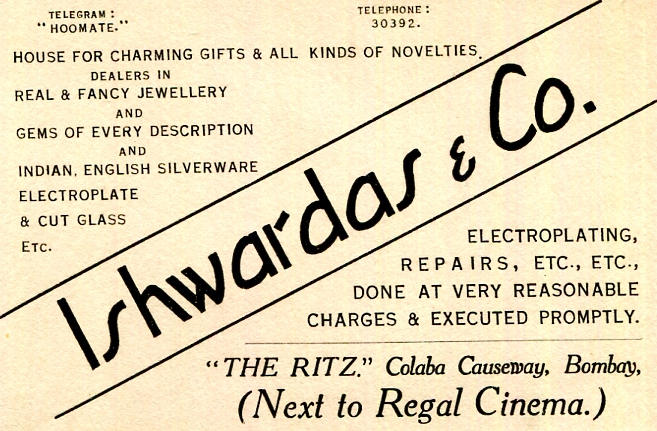 India Bombay Commerce Ishwardas Co Business Card 1938