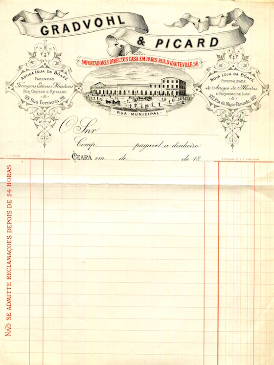 Brazil Commerce Receipt Ceara Gradvohl 7 Picard 1880