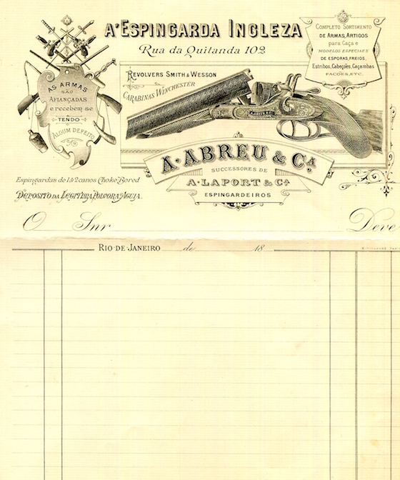 Brazil Rio De Janeiro Commerce Receipt A Espingarda Ingleza 1880