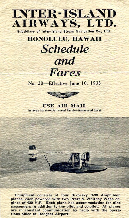 Hawaii Transport Airlines Inter-Island Airways Lealfet 1935