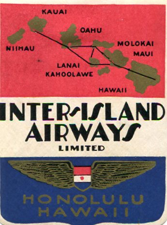 Hawaii Transport Airlines Inter-Island Airways Luggage Label 1933
