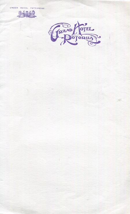 New Zealand Rotorua Hotel Grand Hotel Stationery 1905