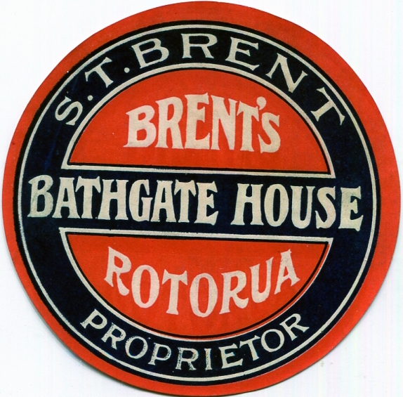 New Zealand Rotorua Hotel St Brent Bathgate House Luggage Label 1910