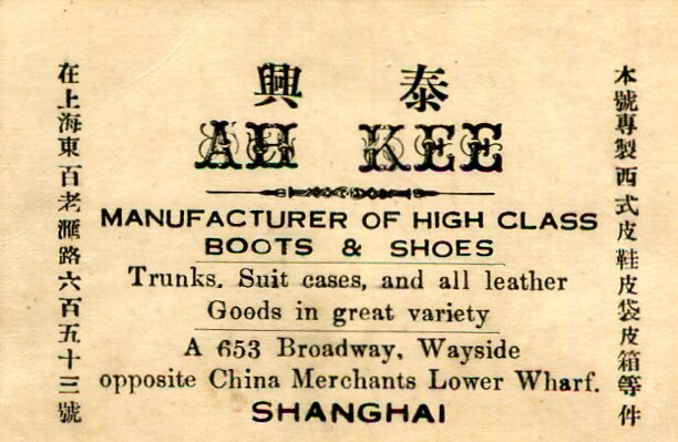 Shanghai Commerce Business Card Ah Kee Shoes 1916