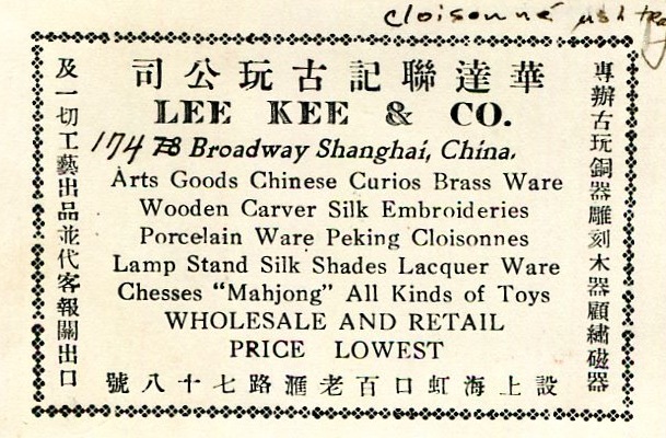Shanghai Commerce Business Card Lee Kee & Co 1937