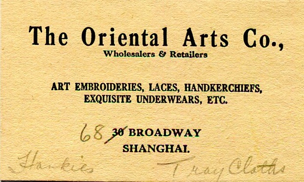 Shanghai Commerce Business Card Oriental Arts Embroideries 1937