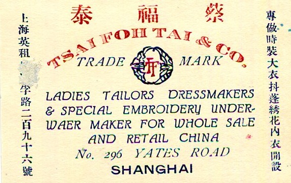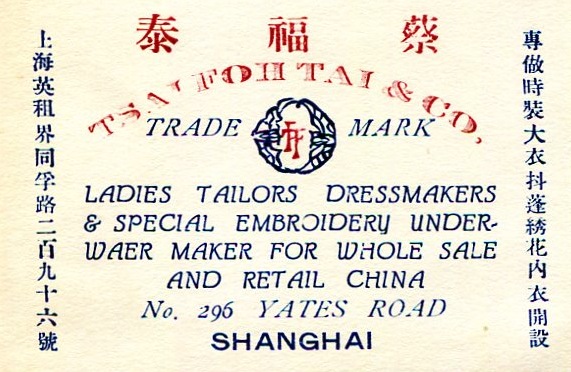 Shanghai Commerce Business Card Tsai Foh Tai & Co Tailors 1934