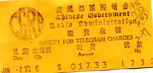 Shanghai Commerce Chinese Government Radio Administration Receipt 1937-2 Front
