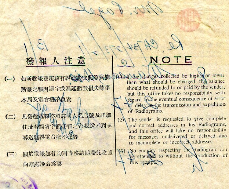 Shanghai Commerce Chinese Government Radio Administration Receipt 1937-2 Back