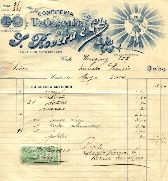 Uruguay Montevideo Commerce Rovera Receipt 1924