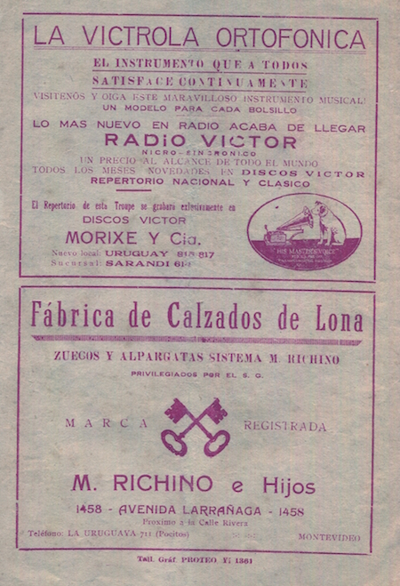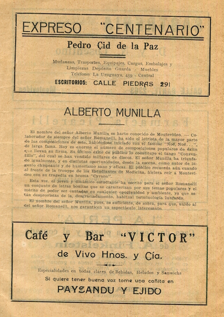 Uruguay Montevideo Entertainment Teatro Cervantes Program 1933 Back