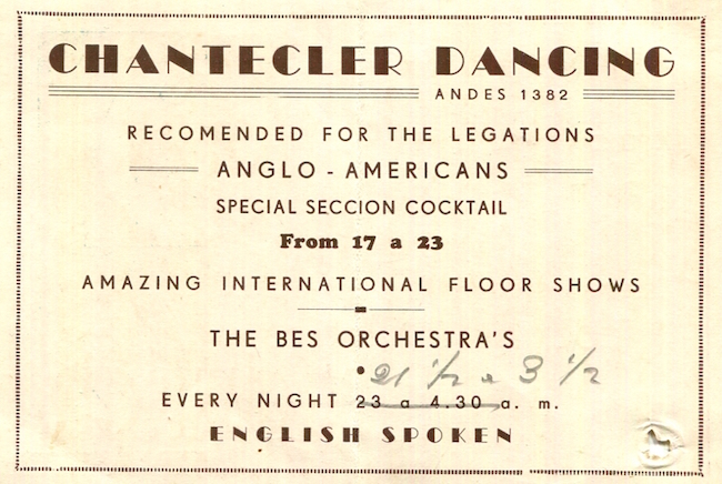 Uruguay Montevideo Entertainment Night Club Chantecler Brochure 1935 Back
