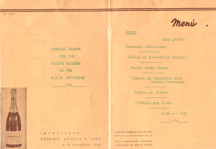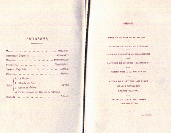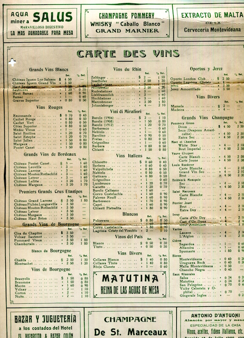 Uruguay Montevideo Hotel Carrasco Menu 1922 Inside