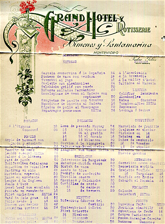 Uruguay Montevideo Hotel Grand Oriental Menu 1907 Inside