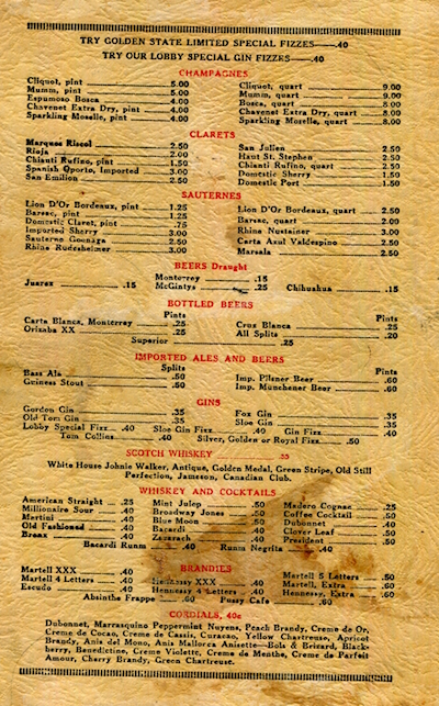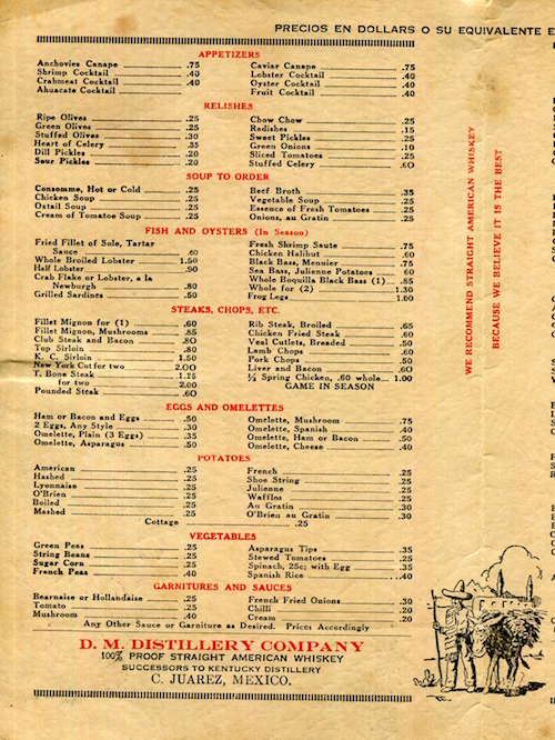 Mexico Juarez Restaurant Mint Cafe Menu 1928 Inside 1