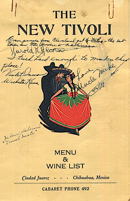 Mexico Chiudad Juarez Restaurant The New Tivoli Menu 1939 Inside 1