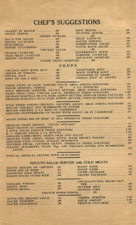 Mexico Chiudad Juarez Restaurant The New Tivoli Menu 1939 Inside 2