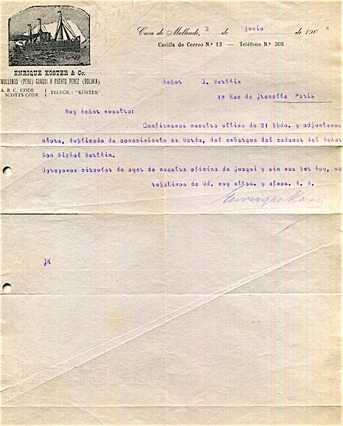 Peru Mollendo Commerce Enrique Ko ster Letter 1905